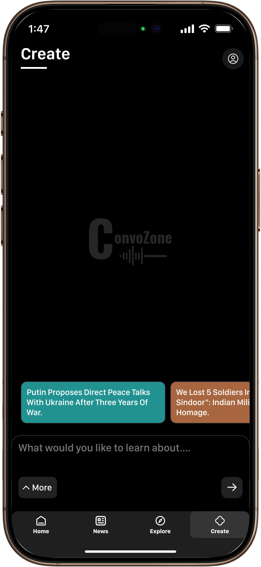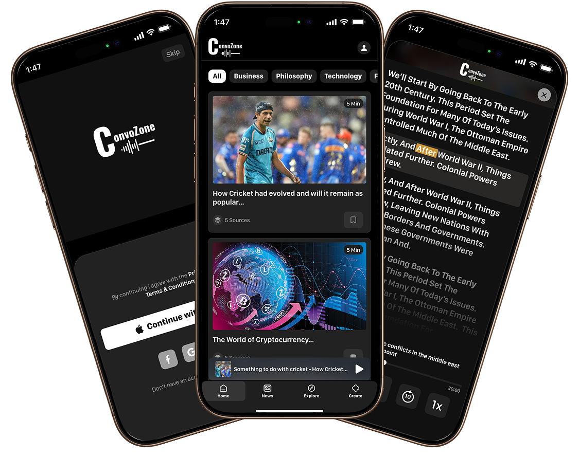 Our AI searches real time for key information and creates a stimulating & information rich podcast-style Conversation.